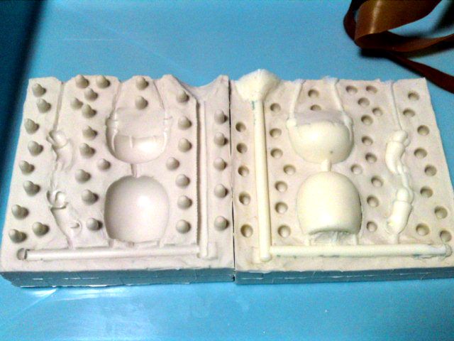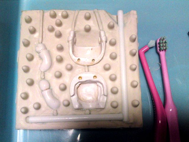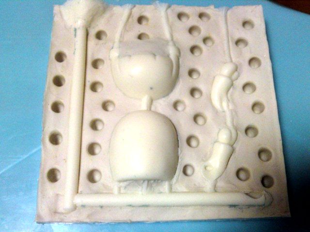 無事に固まったら、ブロックをはずして流れ込んだシリコンを排除します。