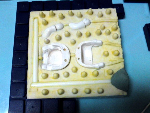 (右)シリコン同士がずれないように5mm程度のダボ穴をほじほじし、パーツを綺麗に拭いて完了!