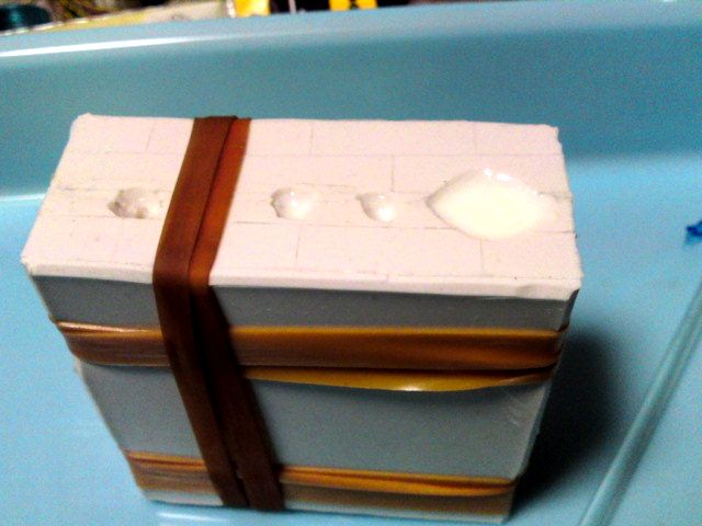 塗ったら枠をブロックで再度作成。2度目のシリコン流しです。