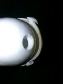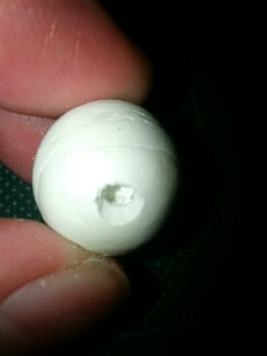 で、球体なので後ろ髪の位置あわせのために後ろに穴を開けてみました。