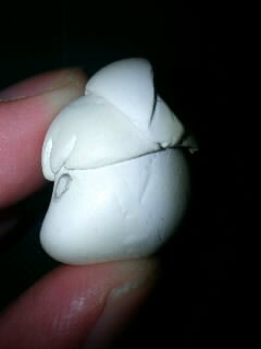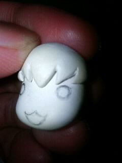 顔全体の加工としては、もともと球体だったのを少し顔の下半分に粘土をもってみた